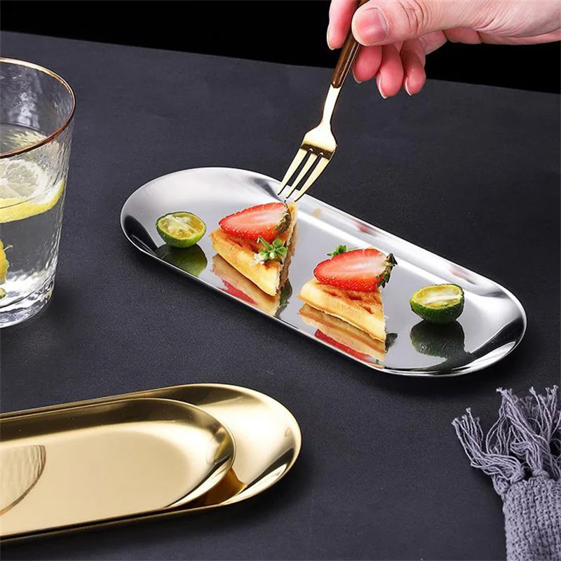 EMESA HOME Stainless Steel Jewelry Storage Tray – Oval Metal Cosmetic Organizer, Cake, Fruit, Dessert, Snack Plate, Kitchen Nut Tray