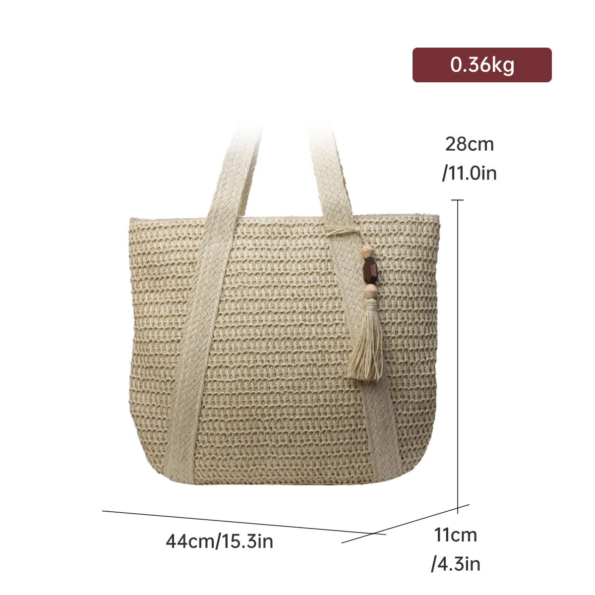 Whether you're heading to the seaside, going on vacation, or running errands, this versatile straw tote enhances any outfit with its natural, elegant look and fashion-forward style.