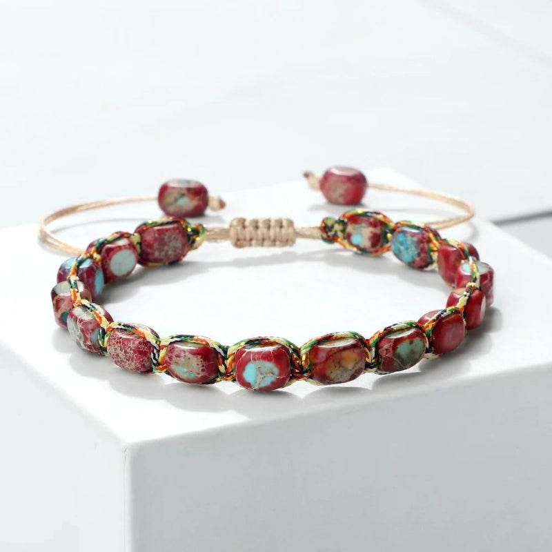 EMESA HOME Bohemian Imperial Stone Beaded Bracelet Handmade Braided Bangle Vintage Strand Jewelry