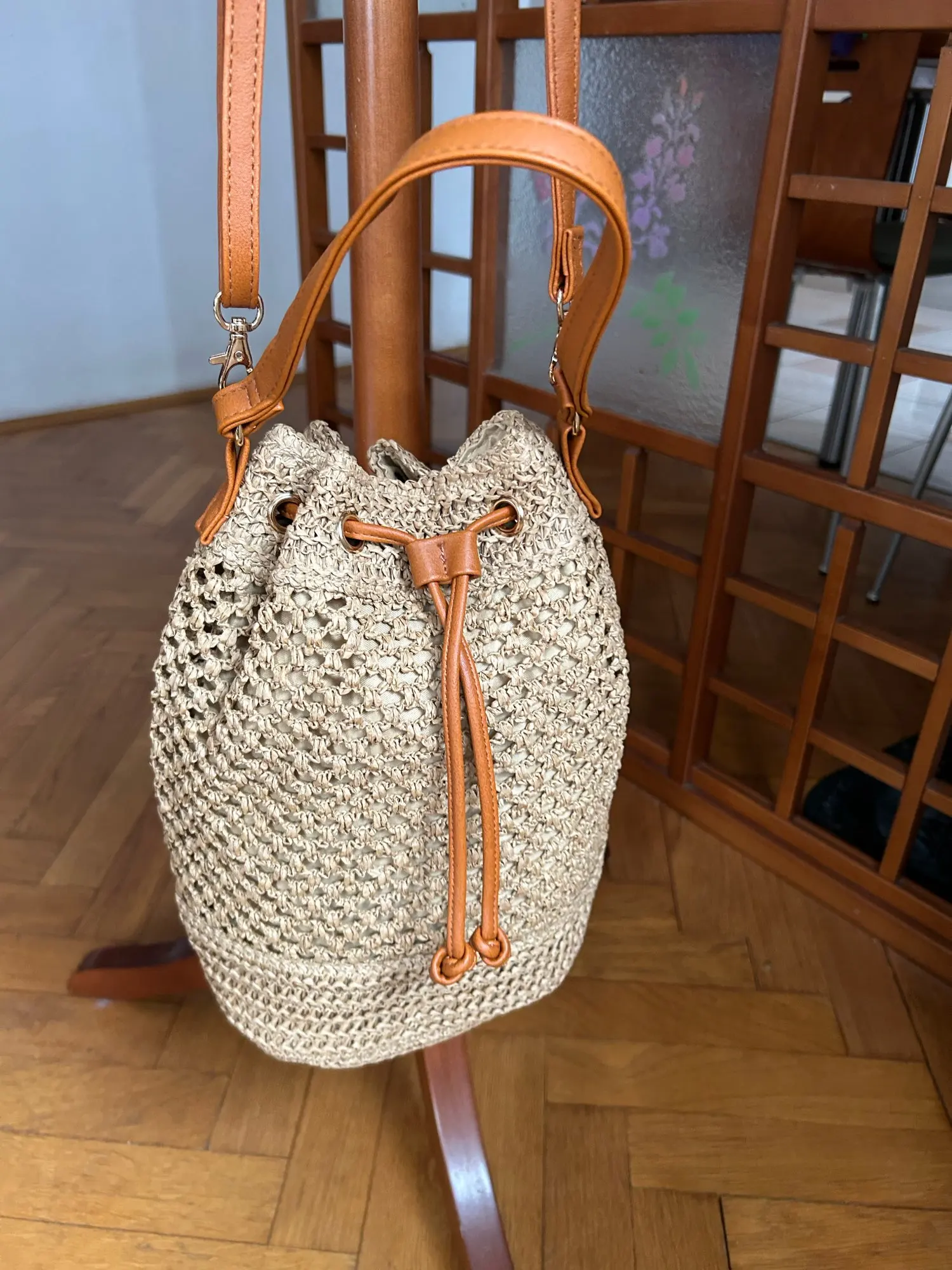 Material: Natural Straw (Exterior), Polyester (Lining)